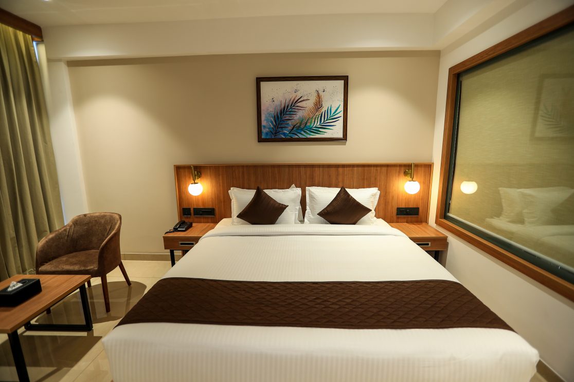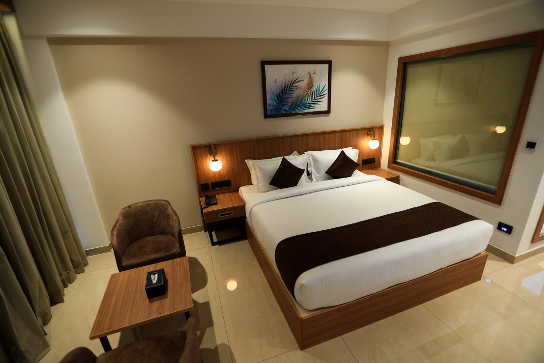 Choose our best deluxe room in Sulthan Bathery, wayanad to experience the height of luxury and comfort. The luxurious King size bed in each roomy deluxe suite comes with soft down comforters, feather bedding, and duvet covers. A variety of feather and non-allergic pillows are available, allowing you to customise your comfortable night’s sleep.